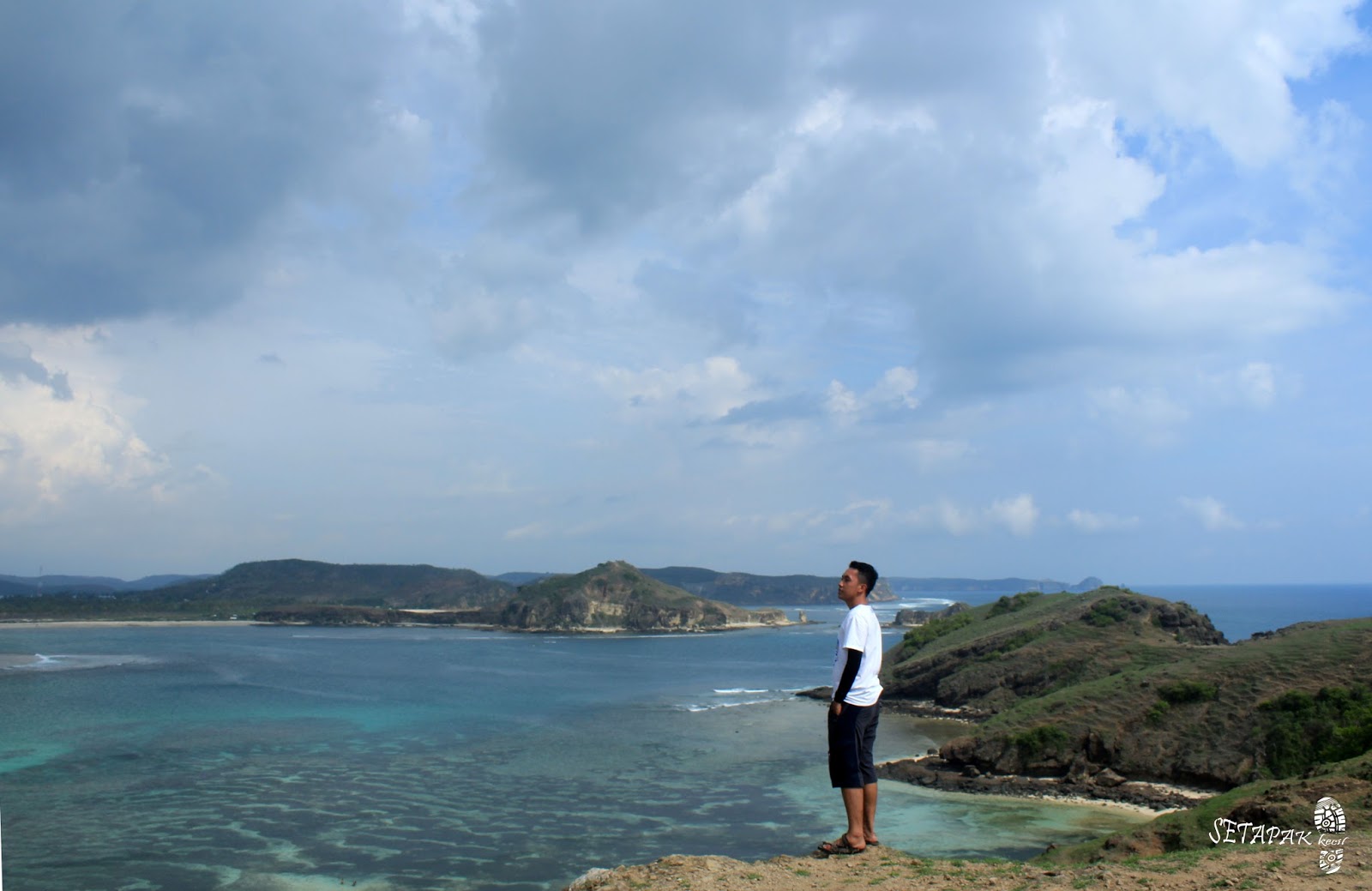 Pantai Seger di sebelah barat, Batu Payung dan Gili Anak Anjakan di sebelah